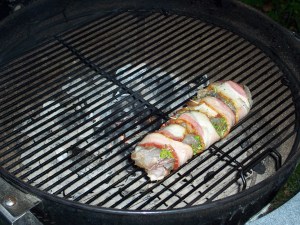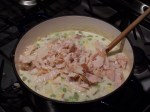 Start making this up while the leeks are simmering. I have used many different jams and chutneys for this and they all work. So get a small bowl, one you can micorwave if you need to and put in a few tablespoons of what you have on hand and want to try. I have used Nervous Nellies Cranberry Peach Chutney, NN’s Rhubarb Ginger Chutney, Bornco Bob’s Raspberry BBQ Sauce, Red Currant jelly as they suggest, Shiriacah, you get the idea. Some sweet with fruits, and some heat. Mix this together, use the MW if necessary.
